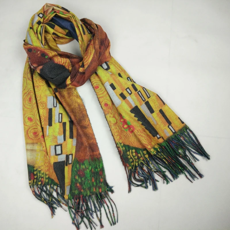 Special Offer Spain fashion women winter designer KlimtVan Gogh oil painting cashmere scarf shawls foulard bandana women wraps scarfs LL180828 Discount 0% Today!
