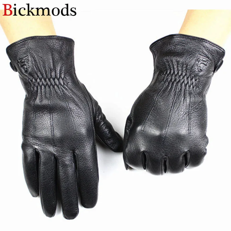 Best . (0% Off) Buy Guantes Leather Gloves Male Deerskin Fashion Stripes Style Wool Lining Spring And Autumn Warm Price Concessions Free Shipping Price Online.
