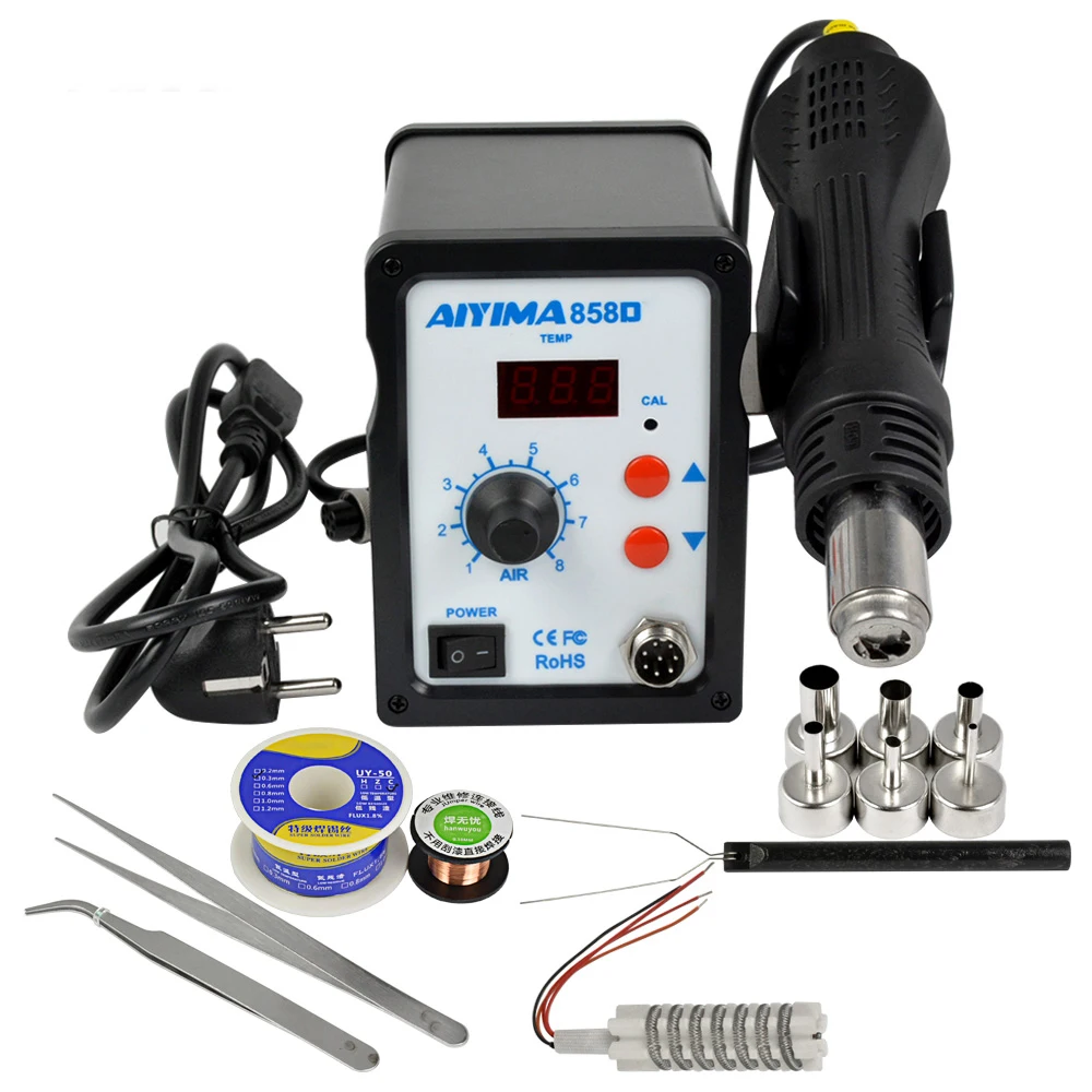 Best . (18% Off) Buy AIYIMA 858D Soldering Station Solder Soldering BGA Rework Station 110V 220V 700W Hot air soldering station LCD digital station Cheap Online.