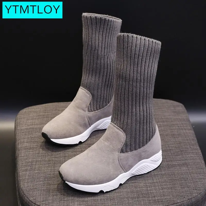 Special Offer 2019 New Autumn And Winter Explosions Fashion Elastic Chunky Stretch Women Sexy Booties Sock Boots Turned over Edge Patchwork Discount 30% Today!