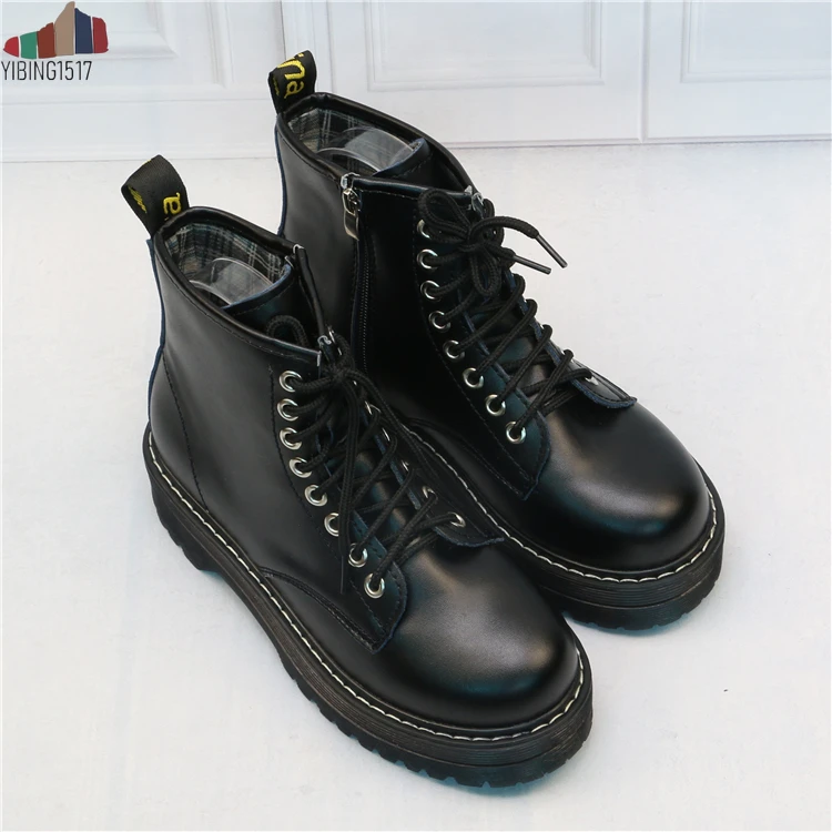 Special Offer NAUSK Women Flat Platform Ankle Boots Spring Boot Black Lace Up Black Medium Creepers Shoes Fashion Party Footwear Discount 36% Today!