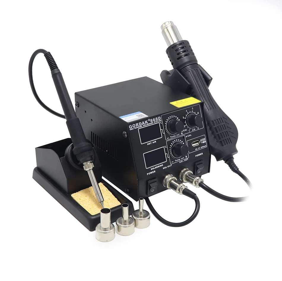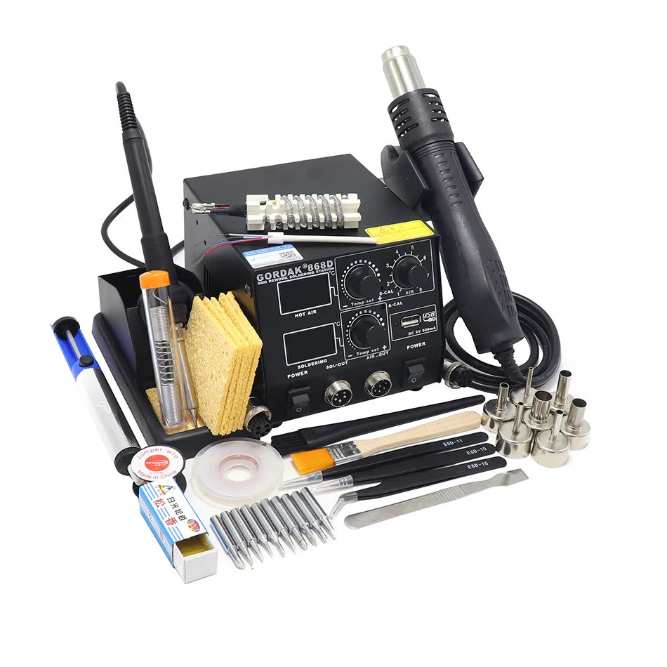 Special Offer GORDAK 868D intelligent 3 in 1 anti static hot air dual digital hot air gun soldering station USB charging mobile phone Discount 39% Today!