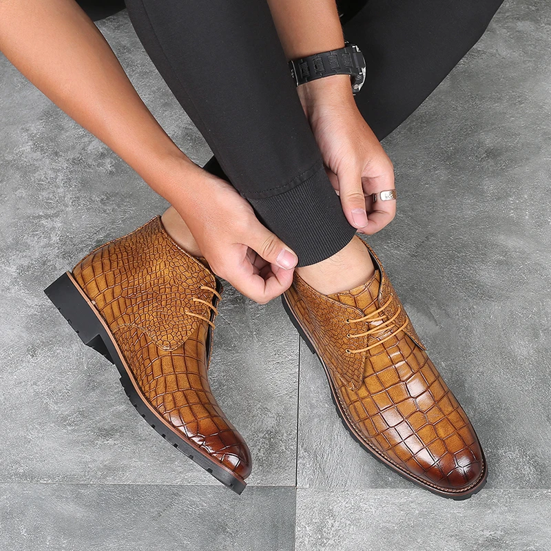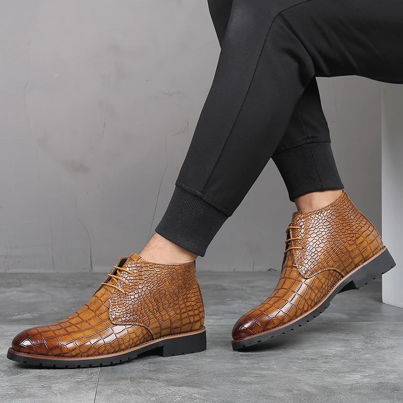 Best . (49% Off) Buy Merkmak Crocodile Pattern Leather Boots Men Shoes Lace up Autumn Ankle Boots Classic Warm Boots Men s Big Size 48 47 Shoe Man Price Online.