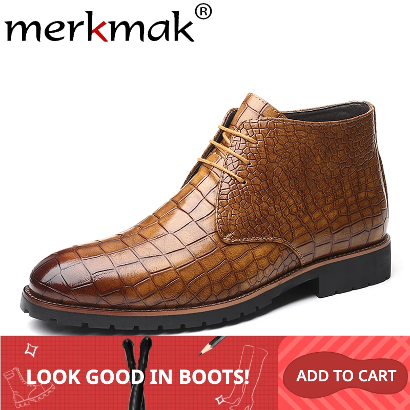 Special Offer Merkmak Crocodile Pattern Leather Boots Men Shoes Lace up Autumn Ankle Boots Classic Warm Boots Men s Big Size 48 47 Shoe Man Discount 49% Today!