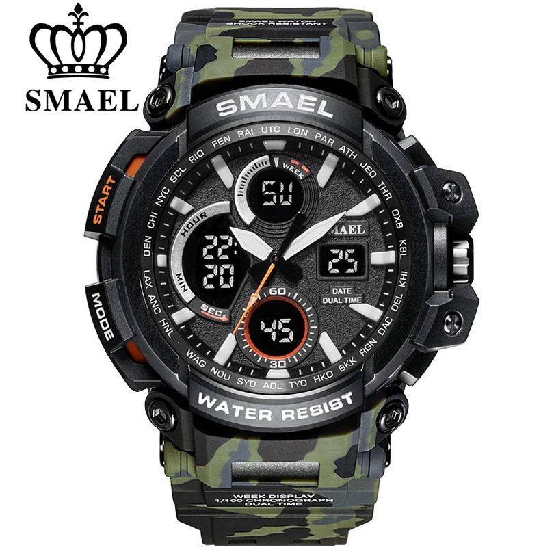 Special Offer SMAEL Camouflage Military Watch Men Waterproof Dual Time Display Mens Sport Wristwatch Digital Analog Quartz Watches Male 1708 Discount 52% Today!