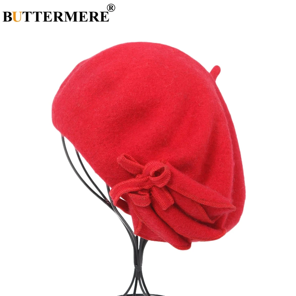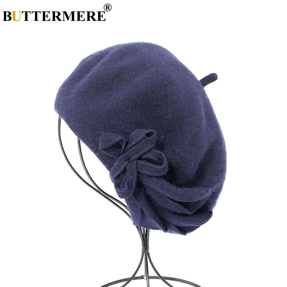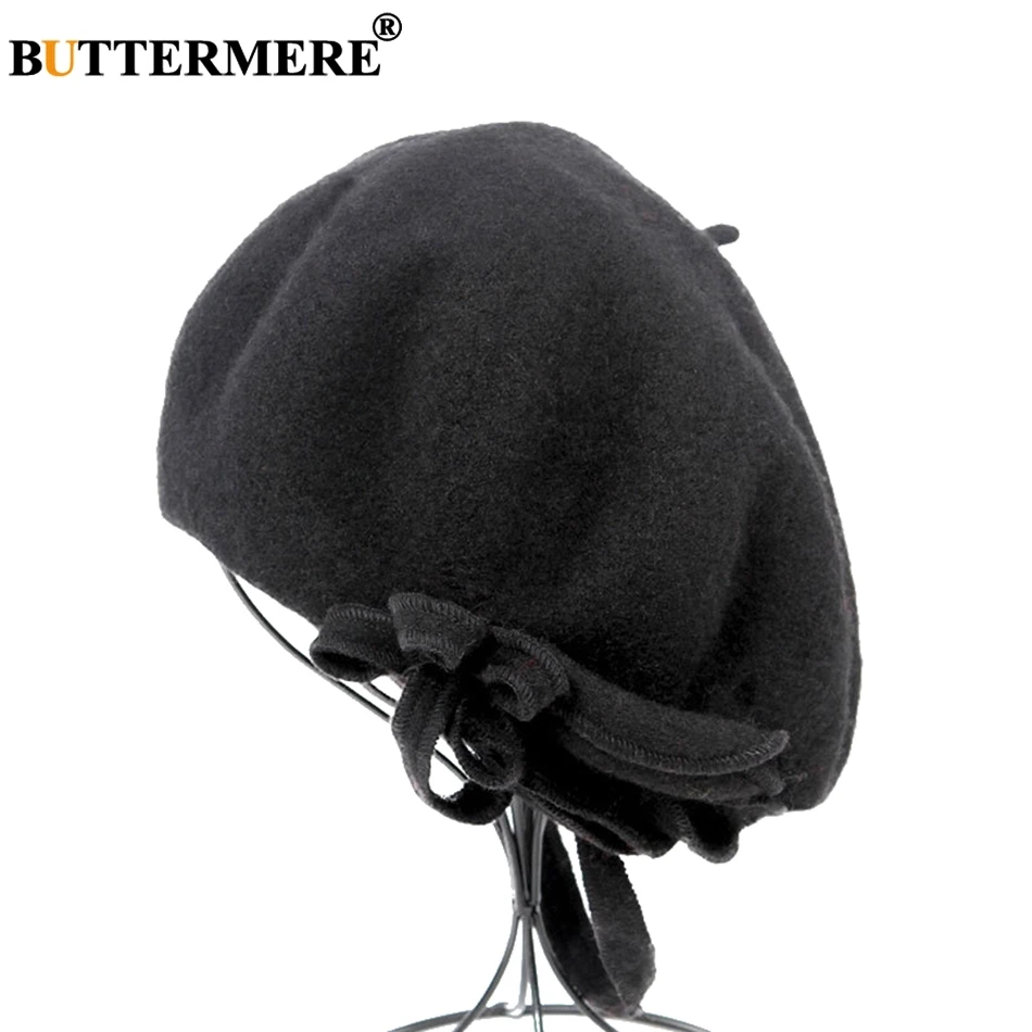 Special Offer BUTTERMERE Wool French Beret For Women Green Elegant Painters Hats Ladies Solid Bowknot Female Beret Autumn Winter Artist Cap Discount 55% Today!