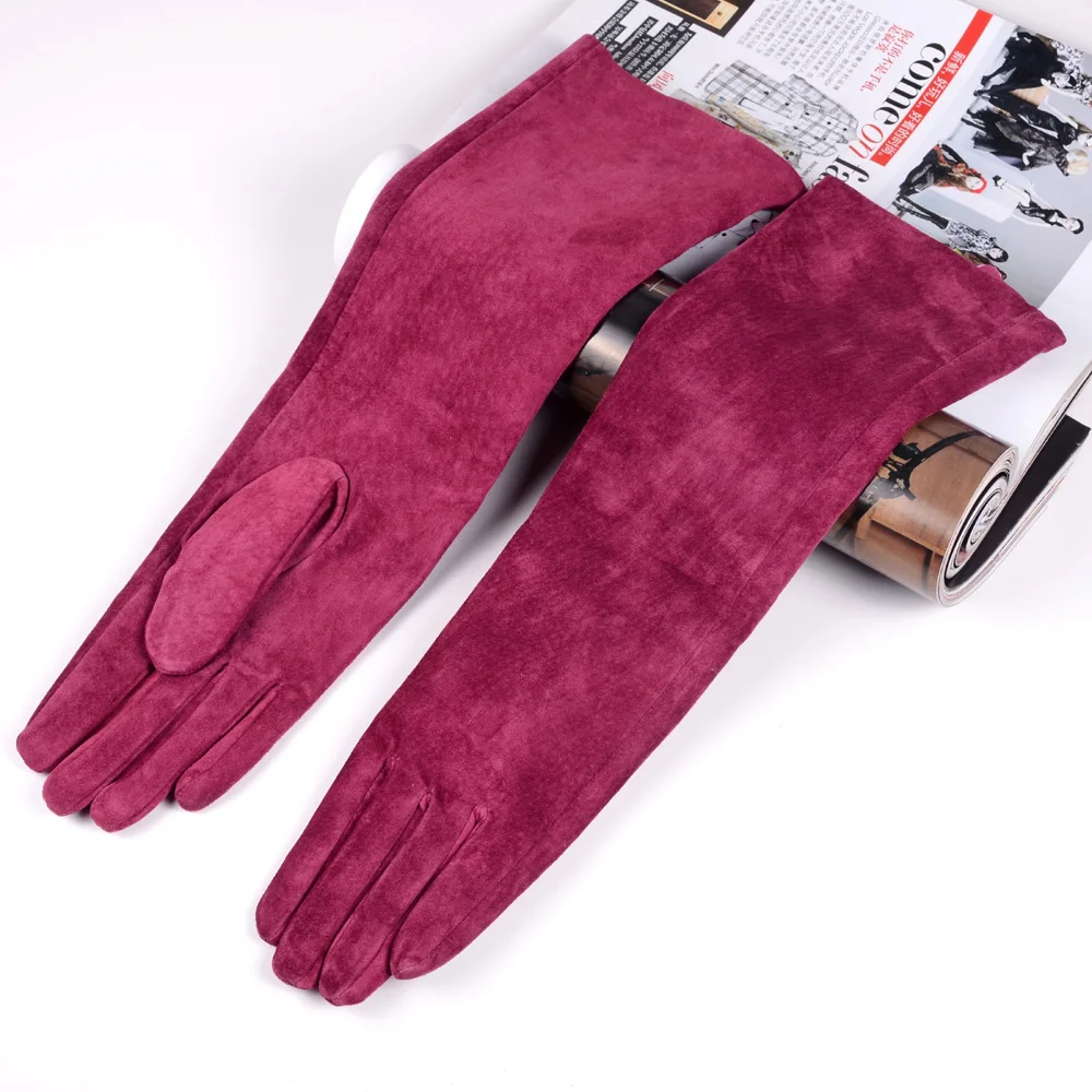 Special Offer Women s Ladies Real Suede leather party long evening gloves Customized gloves Ten Colors Discount 60% Today!