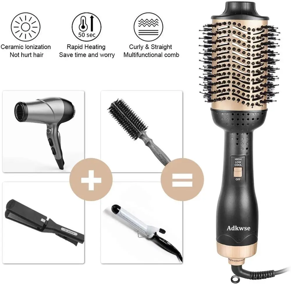Best . (0% Off) Buy Professional One Step Hair Dryer brush volumizer 2 in 1 curler and straightener smooth frizz negative ion Hot Air Brushes salon Price Online.