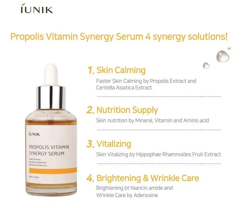 Special Offer IUNIK Propolis Vitamin Synergy Serum 50ml Vitamin C Serum Whitening Face Skin Care Moisturizer Repair Anti Aging Facial Essence Discount 21% Today!