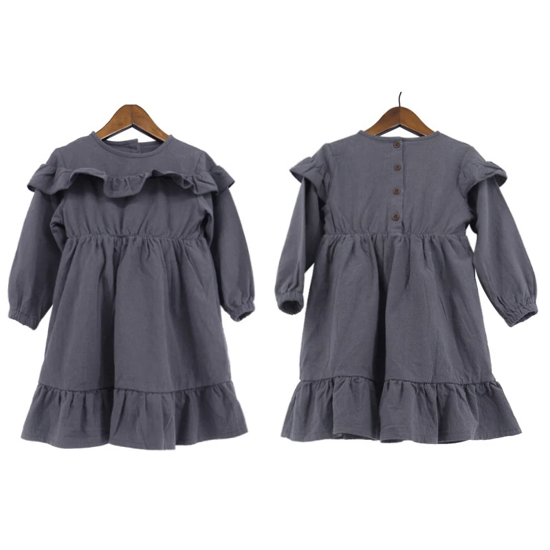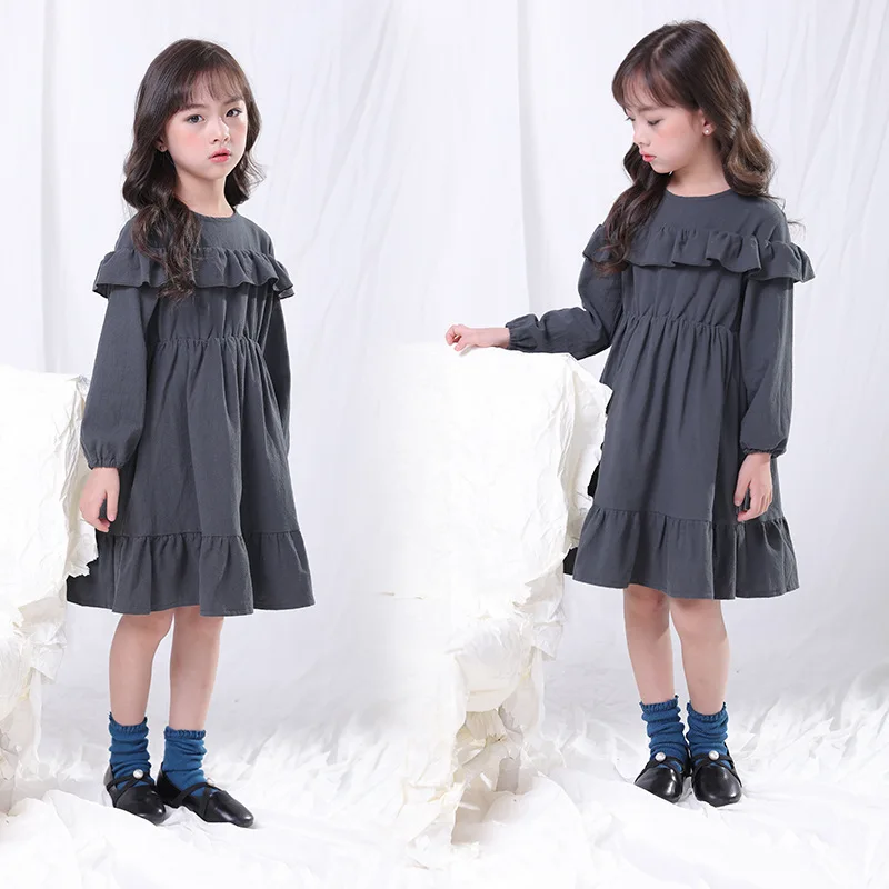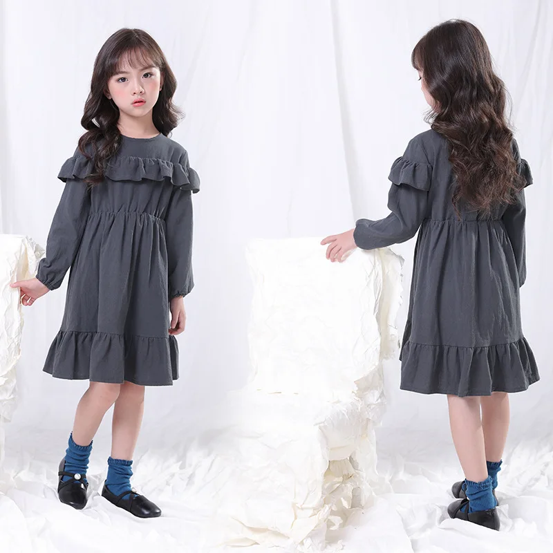 Special Offer chinese style simple dresses age for 3 10 yrs baby girls long sleeve dress 2019 new spring winter princess costume gray frocks Discount 40% Today!
