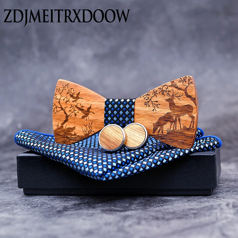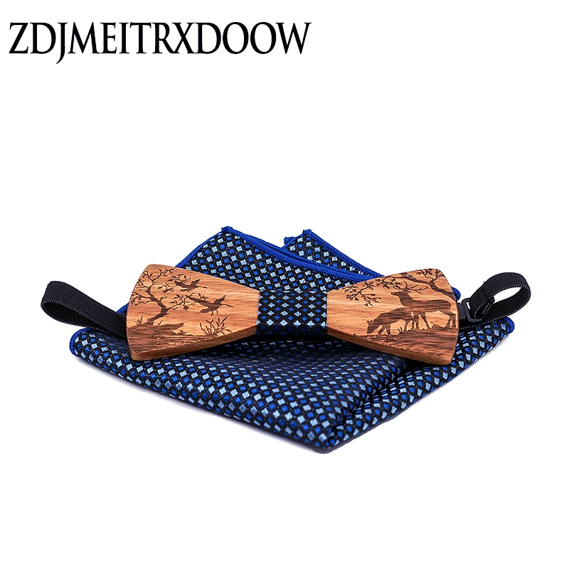 Special Offer New arrival Wood Bowtie+Handkerchief+Cufflinks Sets Marriage Groom Wooden Bow Tie Bowknots Wedding Christmas elk Neck Ties Discount 40% Today!