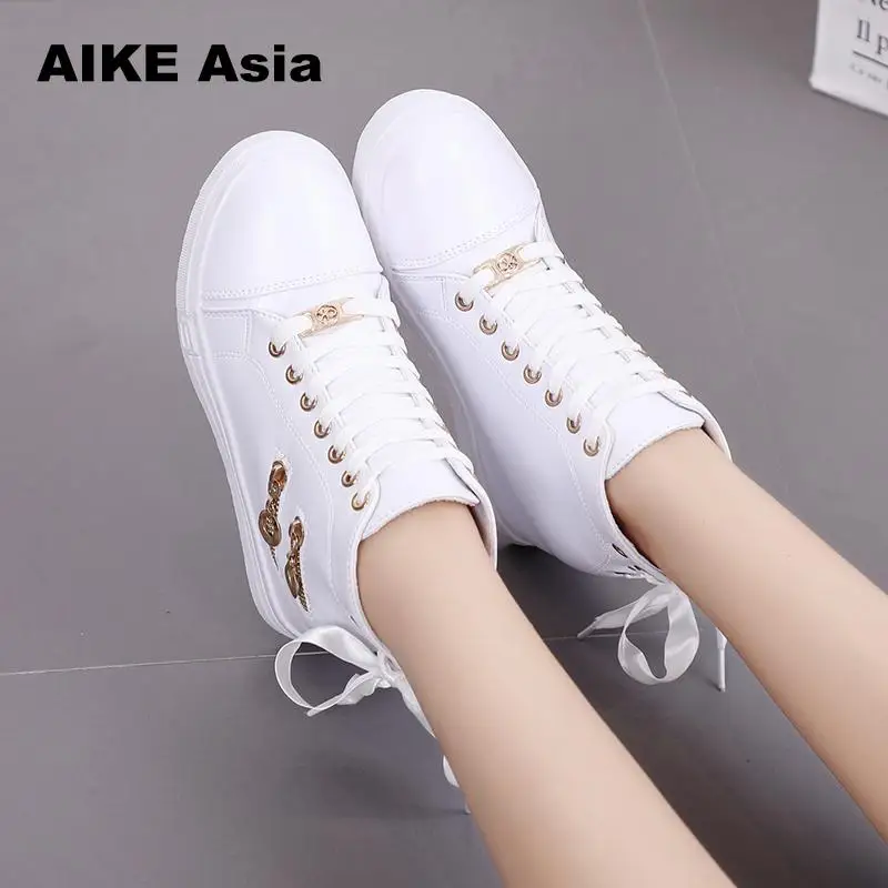 Best . (45% Off) Buy Women Wedge Platform Rubber Brogue Leather Lace Up High heel 6 cm Shoes Pointed Toe Increasing Creepers White Sneakers Zipper 66 Price Online.
