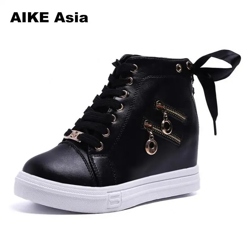 Special Offer Women Wedge Platform Rubber Brogue Leather Lace Up High heel 6 cm Shoes Pointed Toe Increasing Creepers White Sneakers Zipper 66 Discount 45% Today!