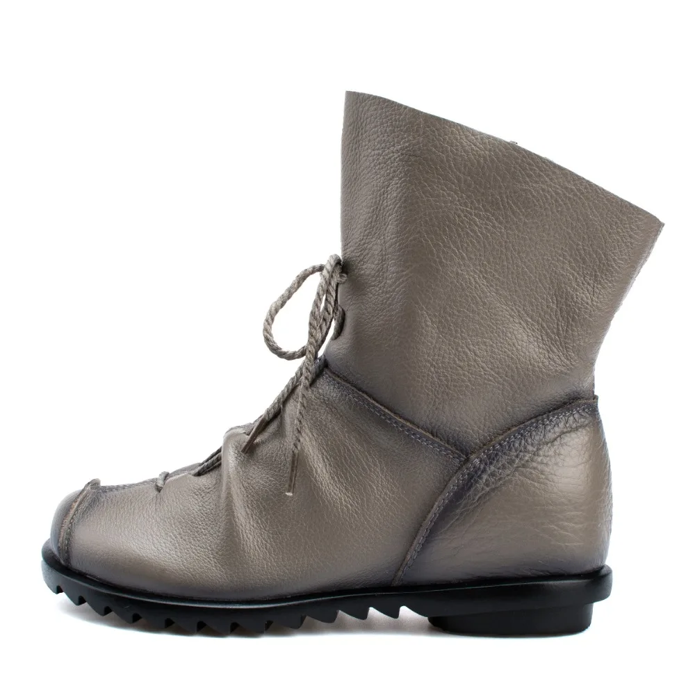 Best . (50% Off) Buy Plus Size Genuine Leather Women Boots Autumn Winter Fashion Pleated Ankle Boots Warm Soft Outdoor Casual Flat Shoes For Ladies Price Online.