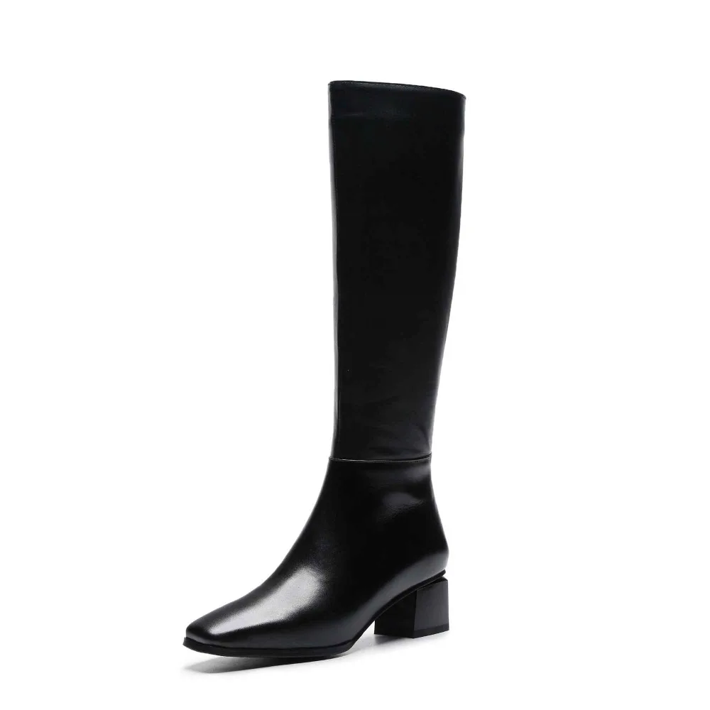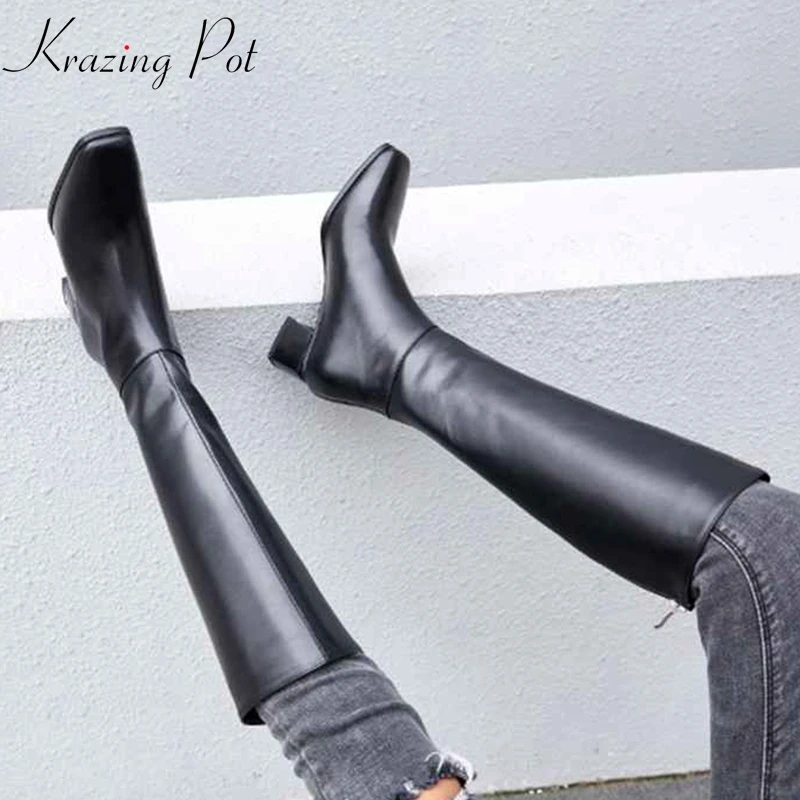 Best . (53% Off) Buy Krazing Pot genuine leather big size thick handsome long boots med heel square toe women keep warm riding knee high boots L0f8 Price Online.
