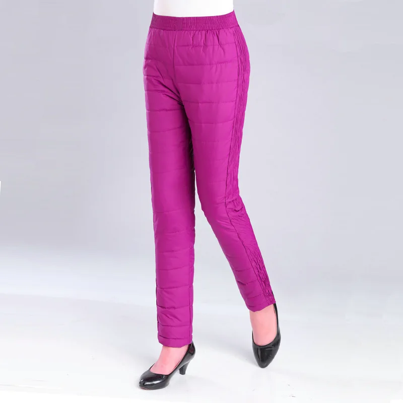 Best . (20% Off) Buy #1923 Winter 80% Duck Down Pants Women Warm Thickening Elastic High Waisted Warm Plus Size Trousers Middle Aged Red Purple Black Price Online.