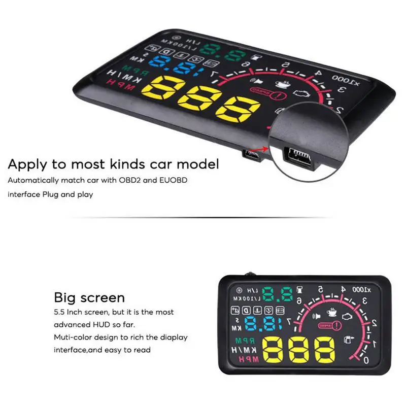 Special Offer 5.5 inch Car HUD head up display OBD2 Overspeed Warning System Projector Windshield Auto Electronic Voltage Alarm Discount 21% Today!