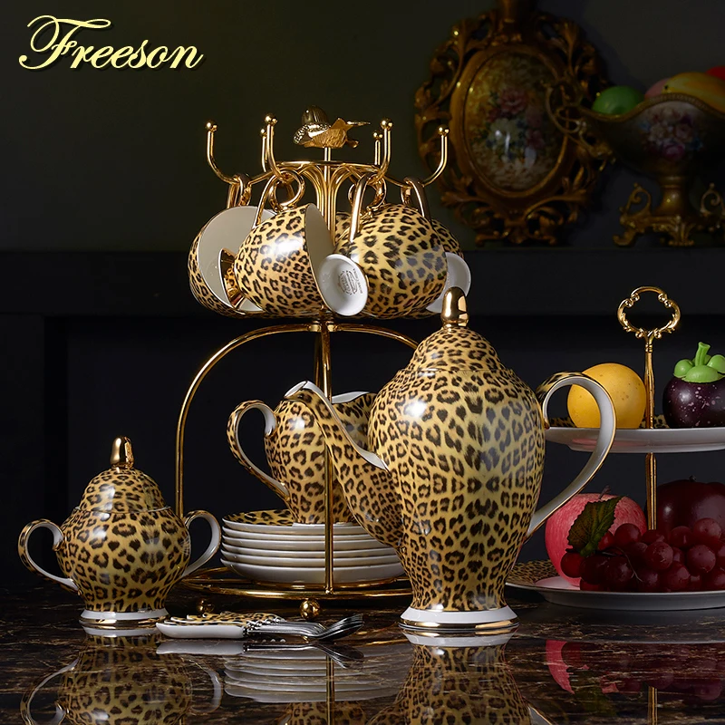 Best . (29% Off) Buy Leopard Print Bone China Coffee Set Luxury Porcelain Tea Set Advanced Pot Cup Ceramic Mug Sugar Bowl Creamer Teapot Drinkware Cheap Online.