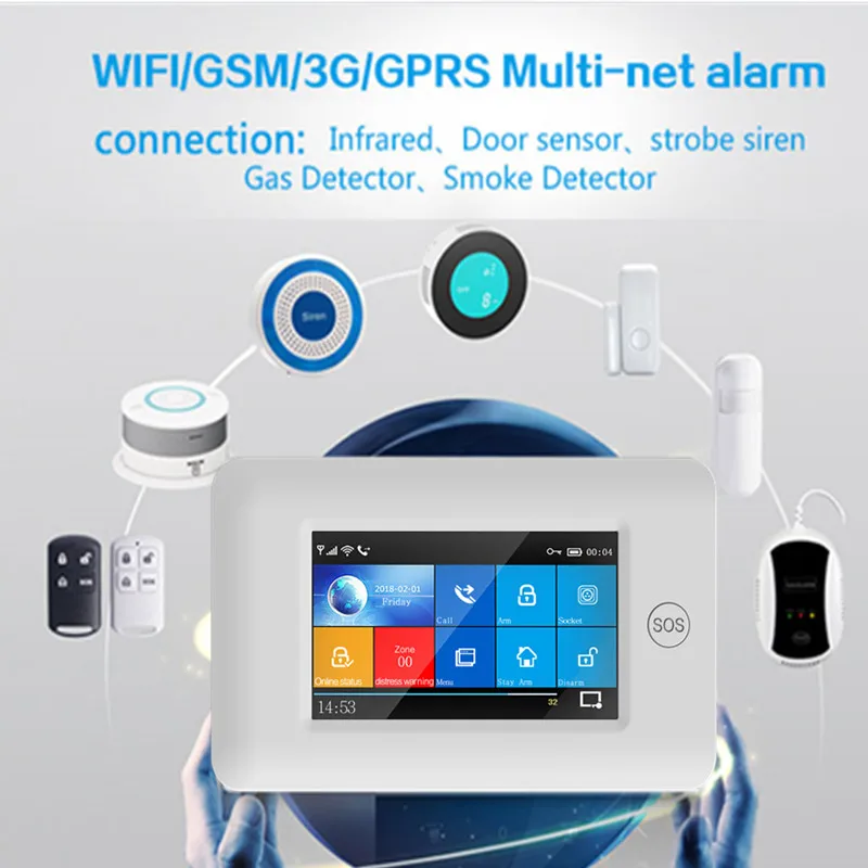 Special Offer 4.3 inch TFT Touch Panel 433Mhz WIFI GSM Wireless Burglar Home Security Alarm System RFID Card with Gas Detector Discount 40% Today!