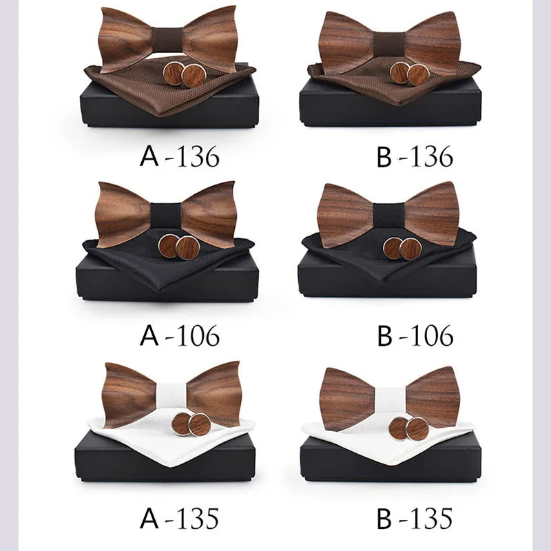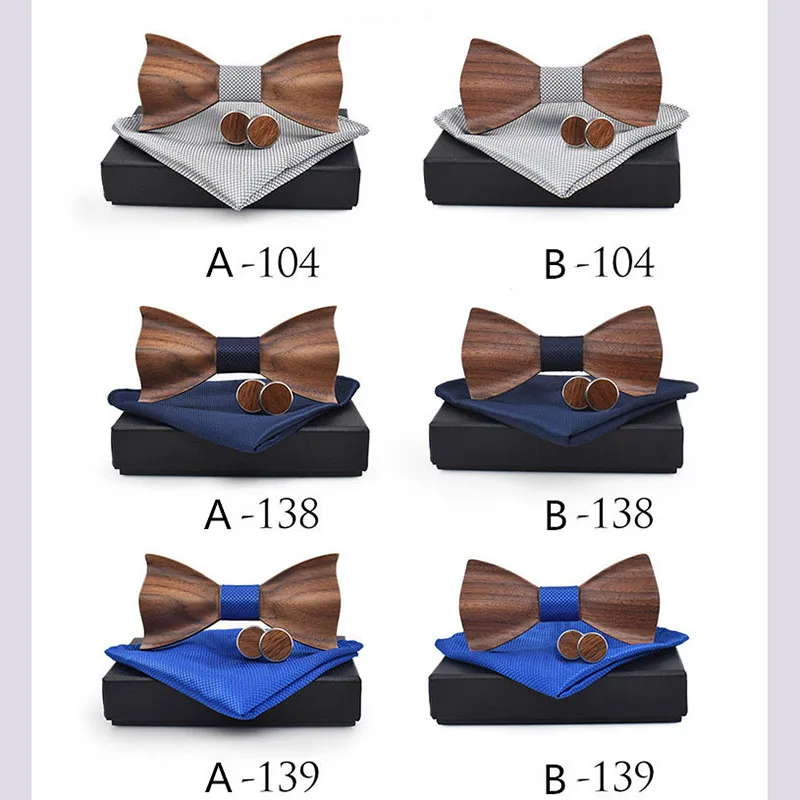 Best . (46% Off) Buy RBOCOTT Handmade Wooden Bow Tie Handkerchief Cufflinks Set Men s 3D Bow Tie Wood Pocket Square with Box Fashion For Men Wedding Cheap Online.