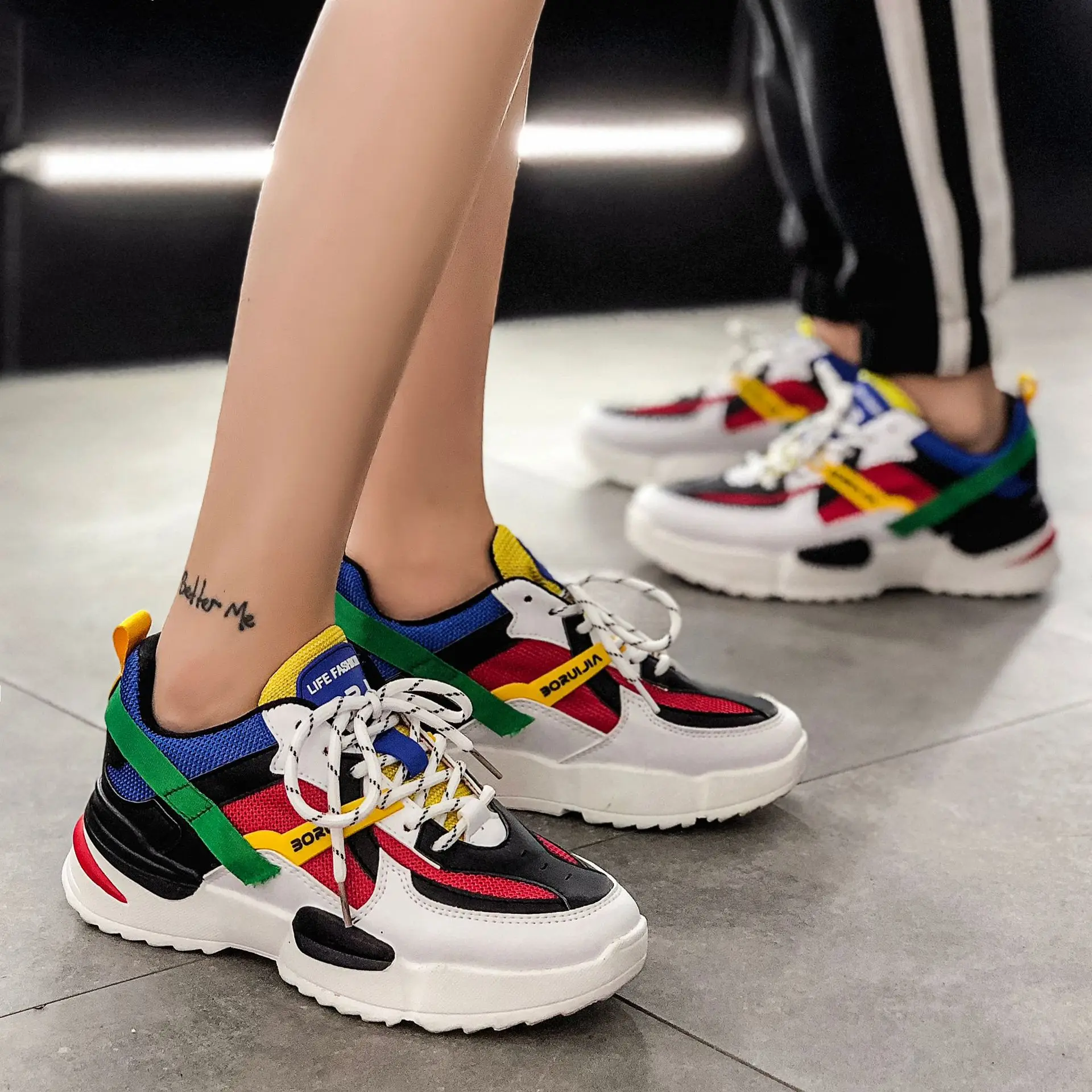 Best . (55% Off) Buy Women Sneakers 2019 Multi color Thick Sole Ladies Platform Shoes Height Increasing Chunky Shoes Women Casual designer shoes Price Online.