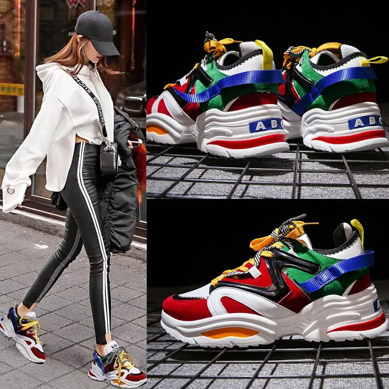 Special Offer Women Sneakers 2019 Multi color Thick Sole Ladies Platform Shoes Height Increasing Chunky Shoes Women Casual designer shoes Discount 55% Today!