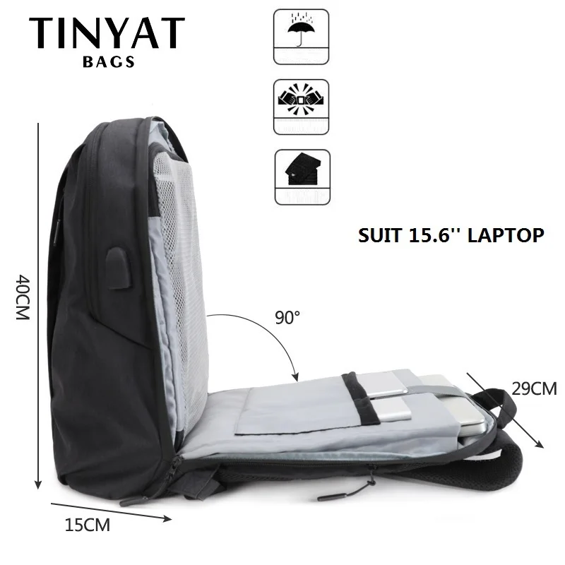 Best . (62% Off) Buy TINYAT Mens laptop backpack USB for 15.6 inch Man backpack Bag 90c open Business Shoulder backpack Male BagPack Travel Mochila Price Online.