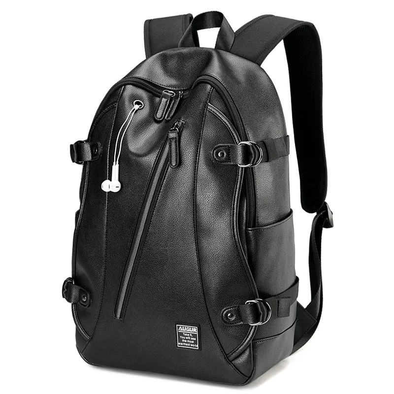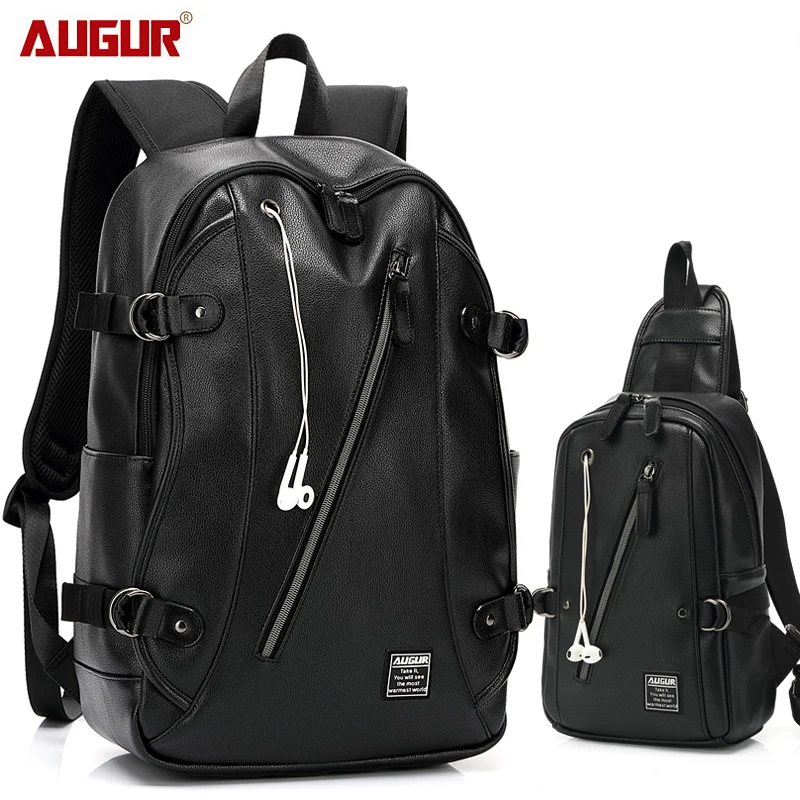 Special Offer AUGUR Fashion Men Women Backpacks PU Leather Earphone Hole Travel Waterproof 15.6 inch Laptop Backpack Teenager Student school Discount 65% Today!