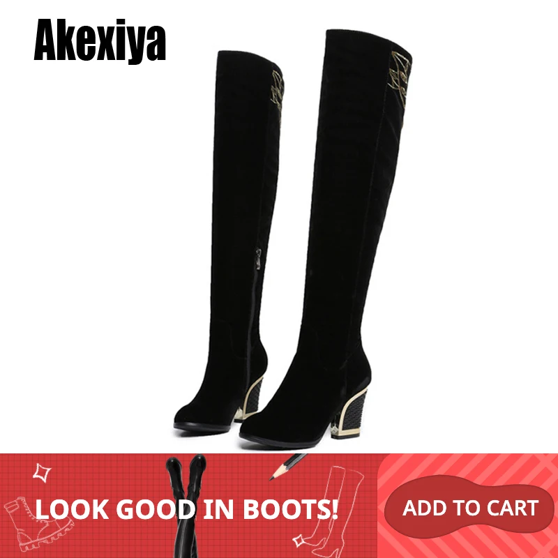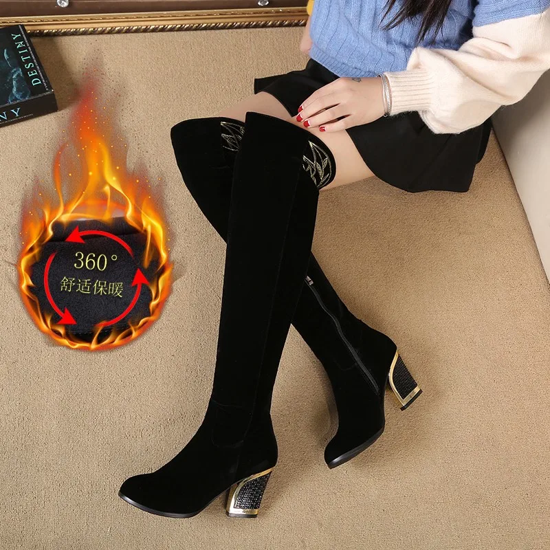 Special Offer 2019 new Women Knee High Boots suede Metal Fashion Boots Winter Footwear Shoes Zipper Chunky Heels Metal decoration y960 Discount 40% Today!