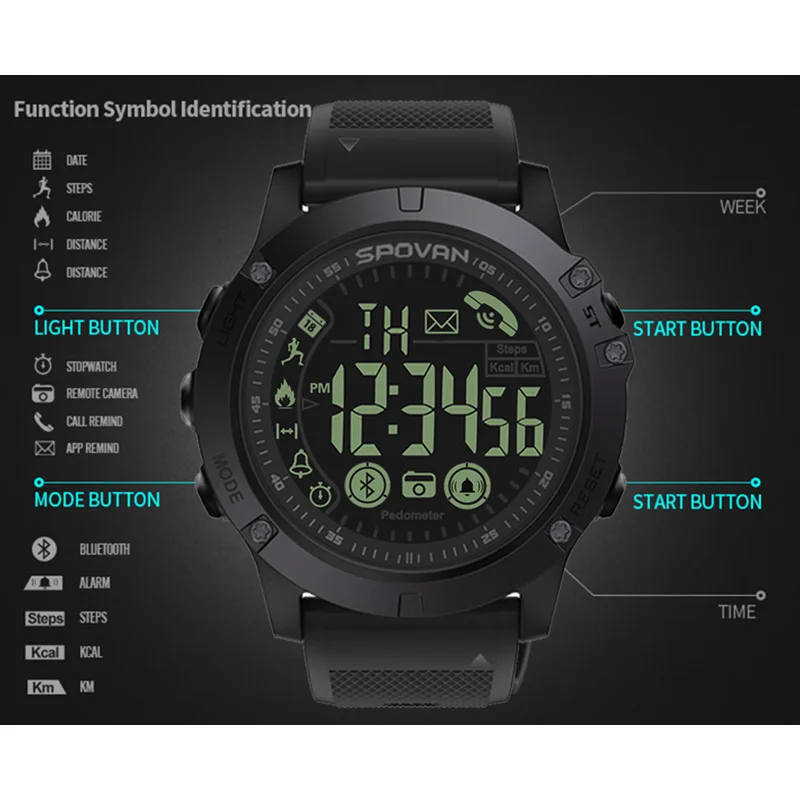 Best . (40% Off) Buy Spovan Top Brand Sport Watch Black Military Quality Military Quality A Plastic Bluetooth Wristwatch Waterproof Date Reloj Mujer Cheap Online.