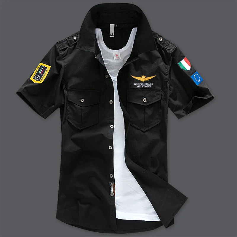 Special Offer New 6XL Military Men s Short Sleeve Shirts Summer Fashion Embroidered High Quality Cotton Air Force One MA1 Casual Shirt AE12002 Discount 41% Today!
