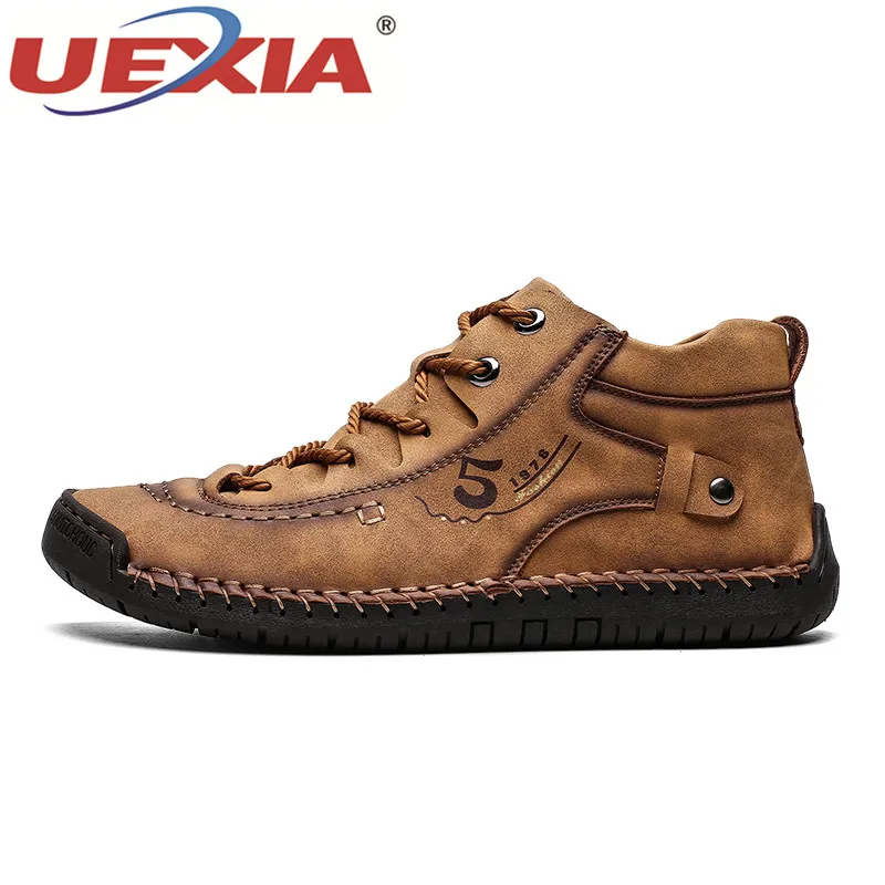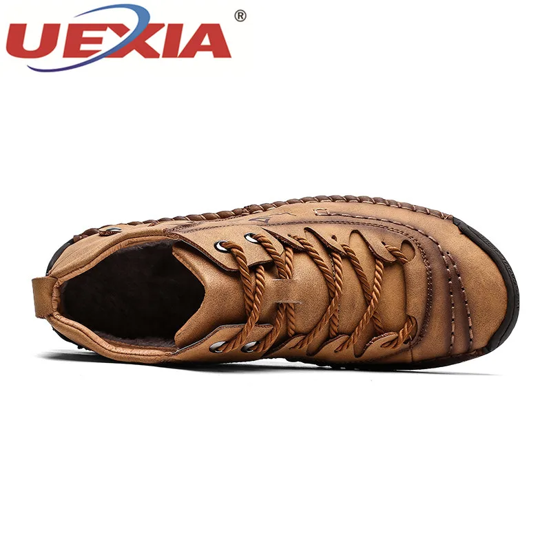 Special Offer UEXIA Winter Men Ankle Boots Comfortable Thick Plush Warm Men Snow Boots Split Leather Autumn Outdoor Man Motorcycle Footwear Discount 48% Today!