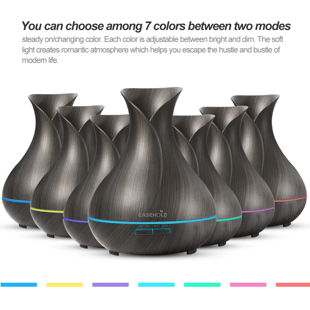 Special Offer EASEHOLD Clearance 400ml Electric Aroma Essential Oil Diffuser Ultrasonic Air Humidifier Wood Grain 7 Color Changing LED Light Discount 5% Today!