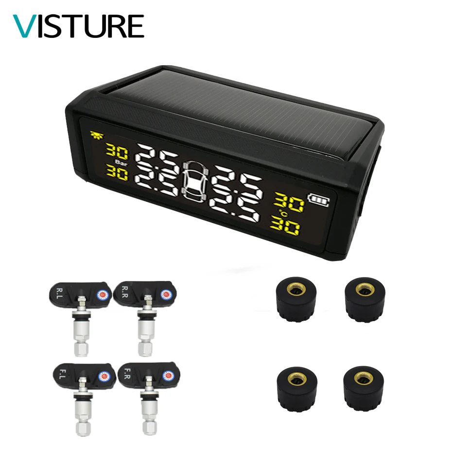 Special Offer TPMS Tire Pressure Alarm Monitoring System Smart Solar Tyre Pressure Monitor 4 Sensor Valve TMPS Gauge Visture S05W S05N D03N Discount 50% Today!