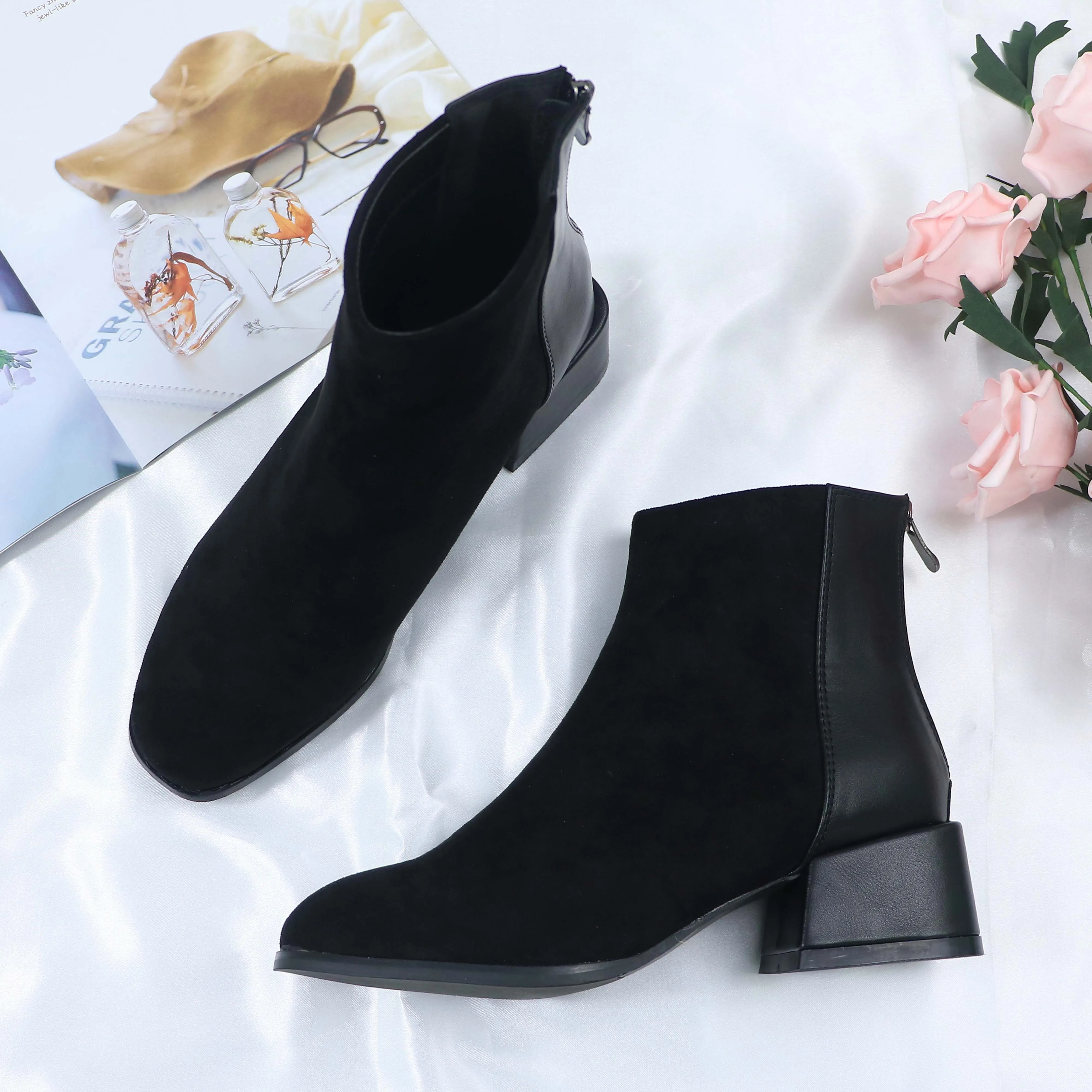 Special Offer Roni Bouker Faux Suede Ankle Boots Women Chunky Heeled Plush Shoe Woman Chic Shoes Lady Brown Chocolate Boot ботинки женские Discount 66% Today!