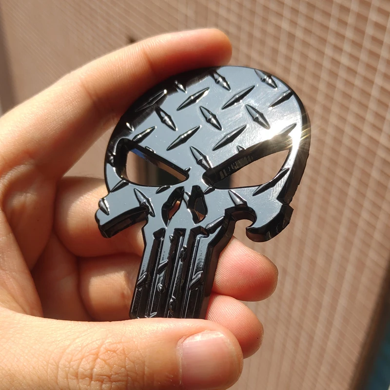 Best . (0% Off) Buy Car Head Decoration Black Punisher Skull Car Badge Emblem Diamond Plate for Auto Front Grille Coming of Age Ceremony Gift Price Online.