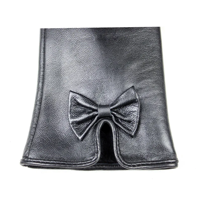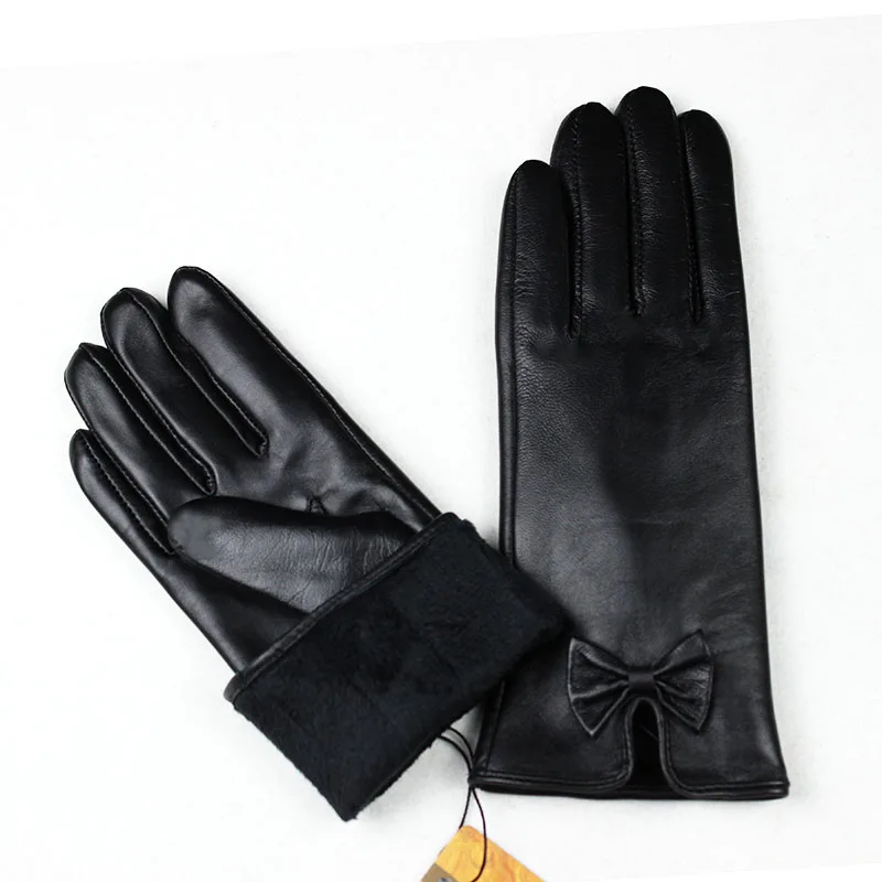 Special Offer women s sheepskin leather gloves 2018 new fashion bow style velvet lining thick autumn warm female finger gloves free delivery Discount 0% Today!