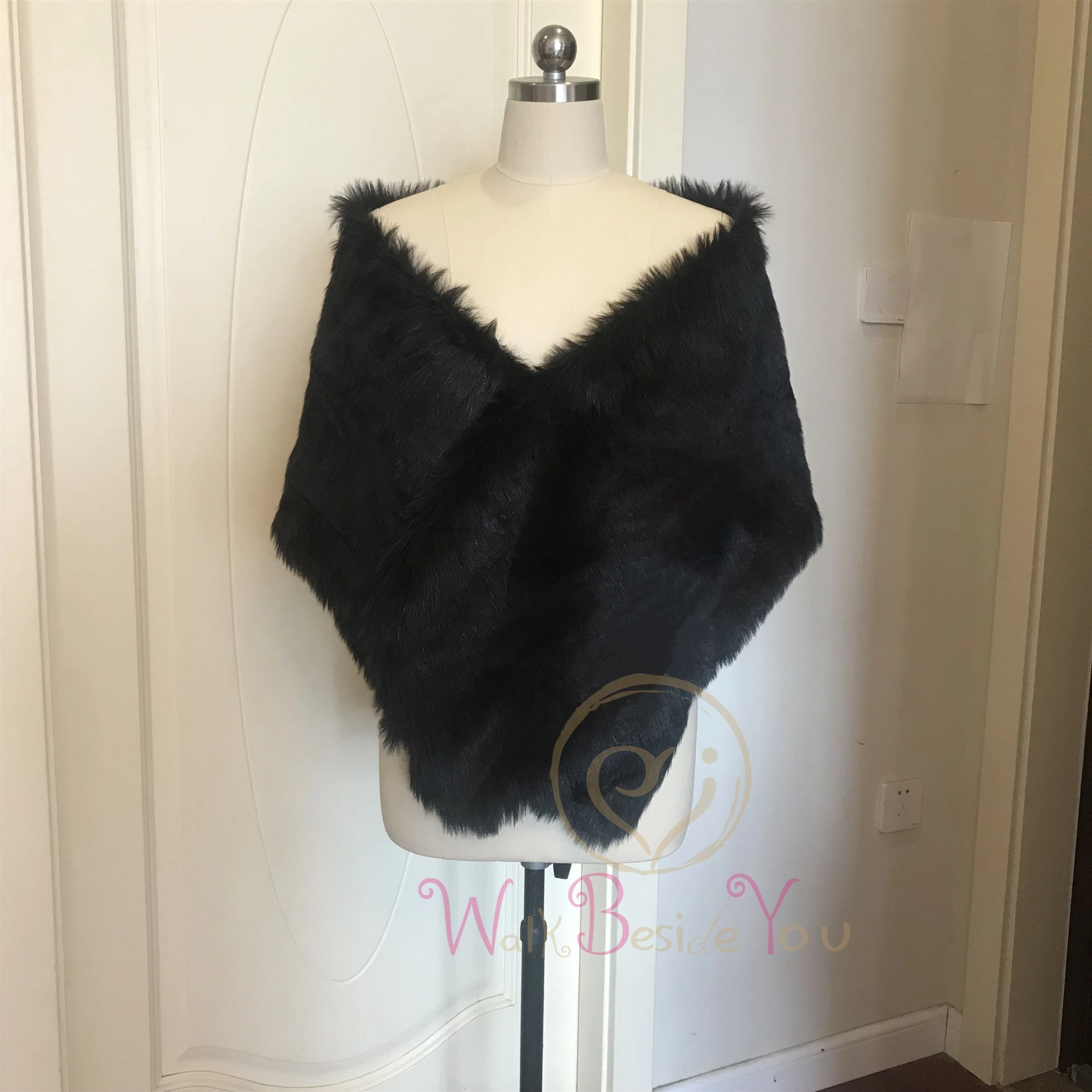 Special Offer 100% Real Pictures Black Party Evening Jacket Wrap Faux Fur Wedding Cape Winter Women Bolero Wrap Winter Shawl Stock Discount 10% Today!