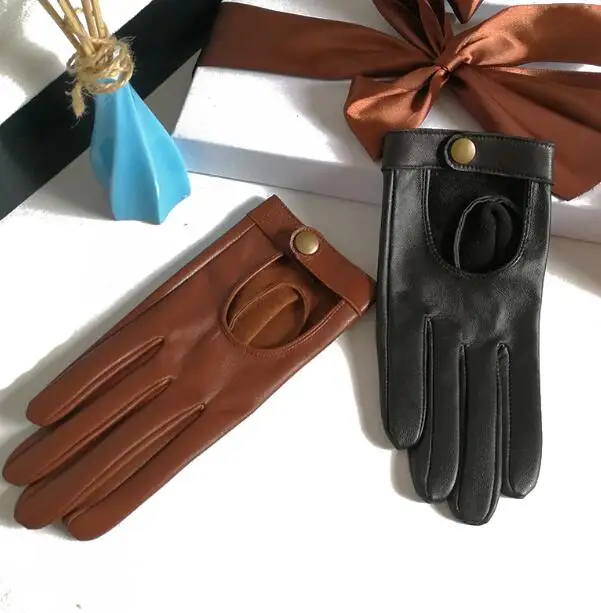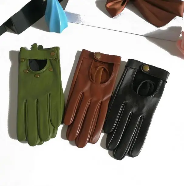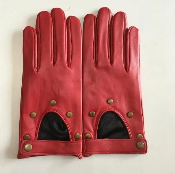 Special Offer Women s Natural Leather Rivet Punk Style Gloves Female Genuine Leather Hollow Out Red Green Motorcycle Driving Gloves R749 Discount 10% Today!