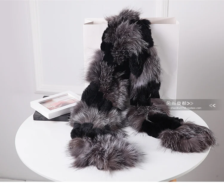 Special Offer Harppihop silver fox fur black color New Fox fur c w rex rabbit fur scarf wrap cape shawl best Christmas gift birthday gift Discount 35% Today!