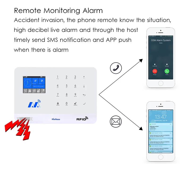 Special Offer Marlboze Wireless Home Security GSM WIFI GPRS Alarm System IOS Android APP Remote Control RFID Card PIR Sensor Door Sensor kit Discount 40% Today!