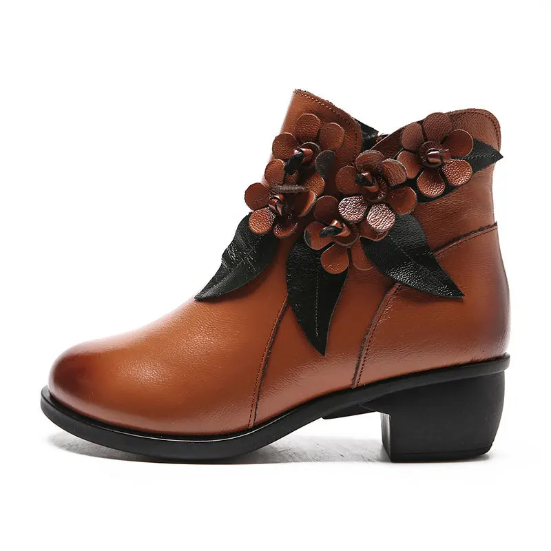 Best . (45% Off) Buy 2019 Winter booties Women Boots Vintage Genuine Leather Low Heeled Shoes Round Toe Shoes Fashion Ladies Ankle Boots for Women Price Online.