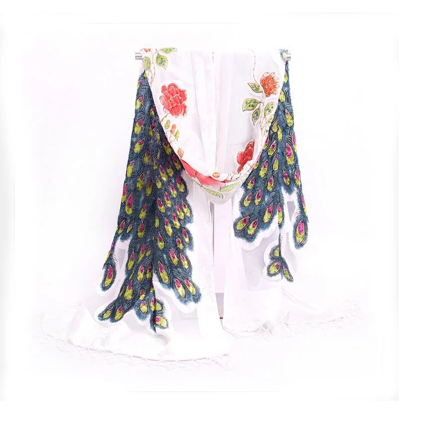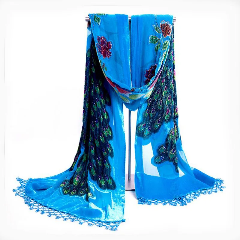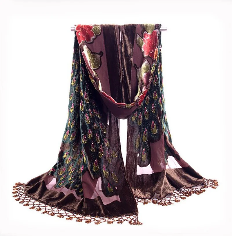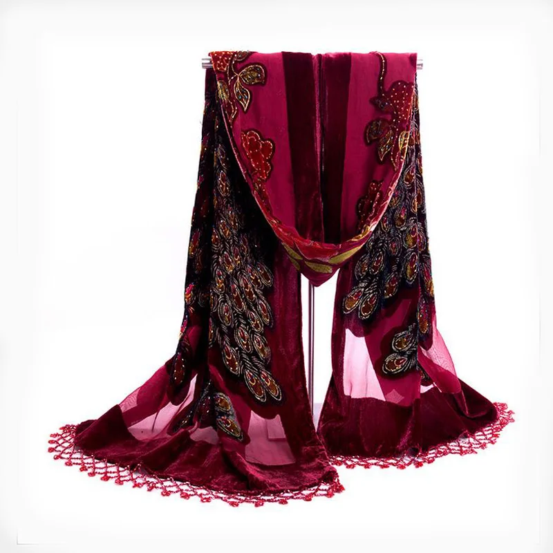 Special Offer New Arrival Burgundy Chinese Ethnic Style Emboridery Shawl 100% Velvet Silk Handmade Beaded Pashmina Cape Peacock Scarf Discount 45% Today!