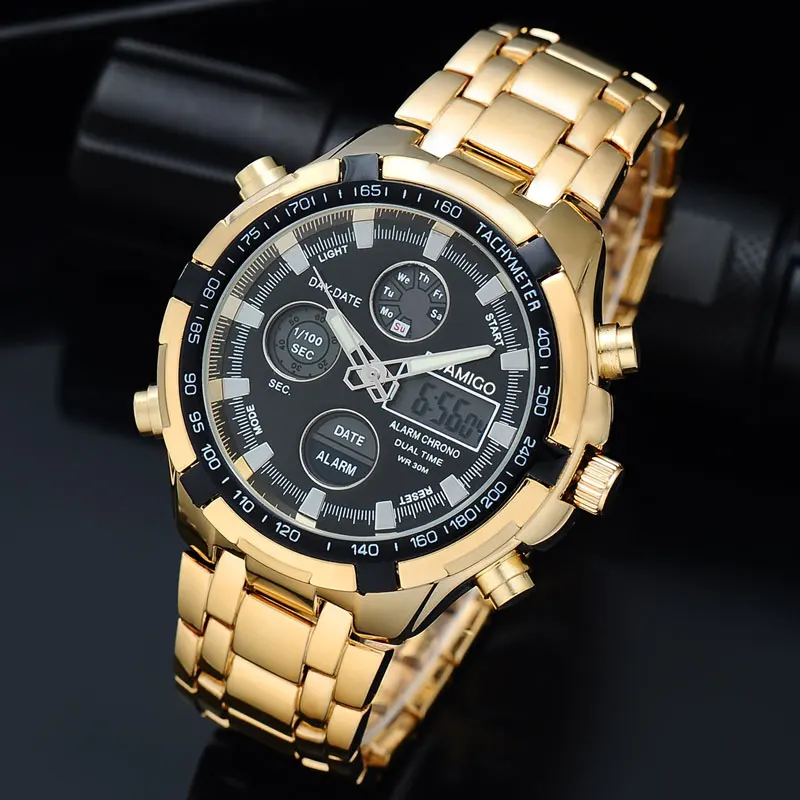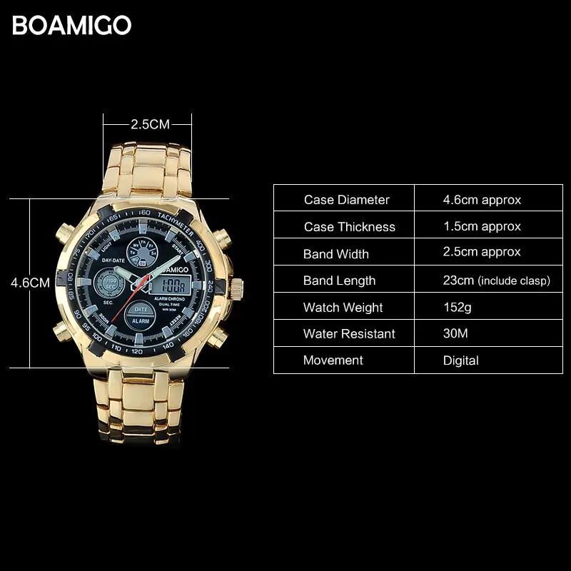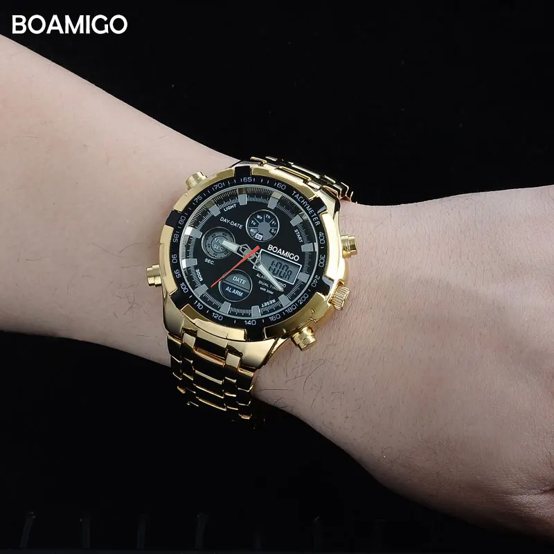 Best . (92% Off) Buy BOAMIGO Brand Watches Military Men Sport Watches Auto Date chronograph gold Steel Digital Quartz Wristwatches Relogio Masculino Cheap Online.