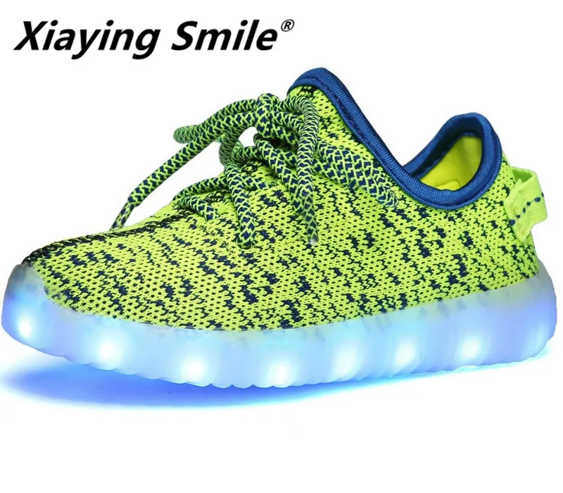 Special Offer Xiaying Smile Boys Girls Luminous LED Shoes Children Flats Shoes USB Cycle Charging Casual Lace Up Mesh Light Soft Rubber Shoes Discount 0% Today!