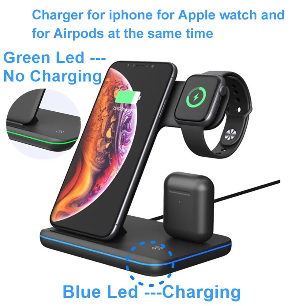 Special Offer 3 in 1 wireless Charging Stand for Apple Watch AirPods Charging Station Qi 15W Fast Wireless Charger for iPhone 11 X XS MAX XR Discount 32% Today!