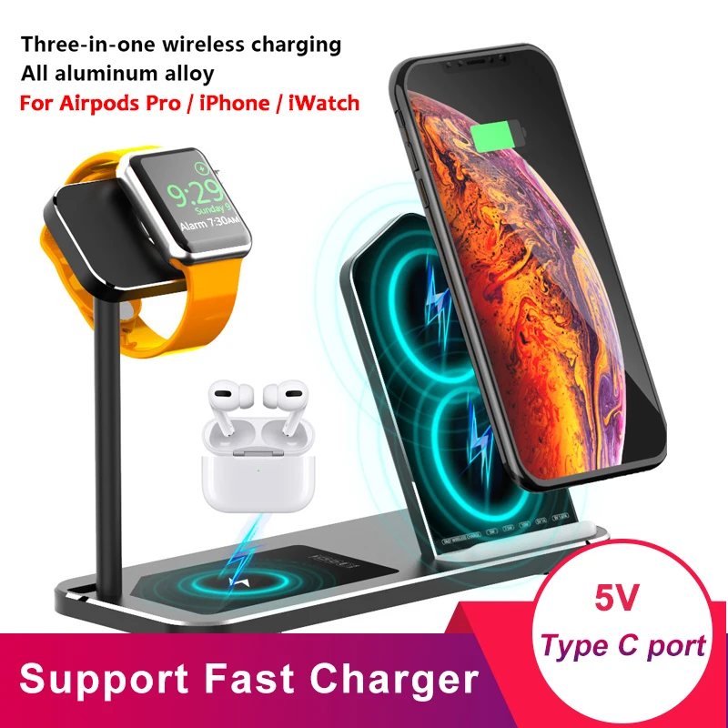 Best . (32% Off) Buy For Apple Airpods Pro iPhone iWatch Series 5 Fast Wireless Charger Stand Dock 3 in 1 Aluminum Alloy Charging Station Base Cheap Online.