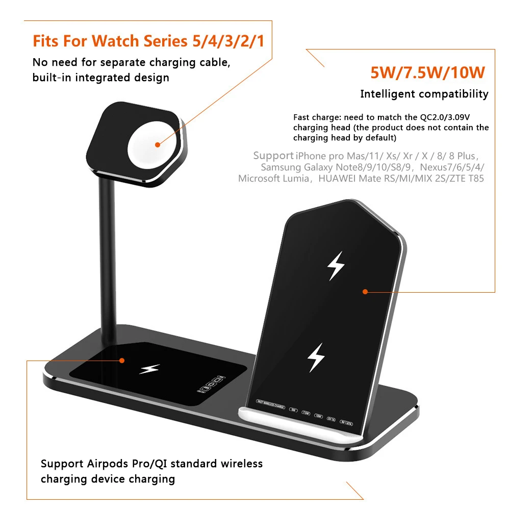 Special Offer For Apple Airpods Pro iPhone iWatch Series 5 Fast Wireless Charger Stand Dock 3 in 1 Aluminum Alloy Charging Station Base Discount 32% Today!