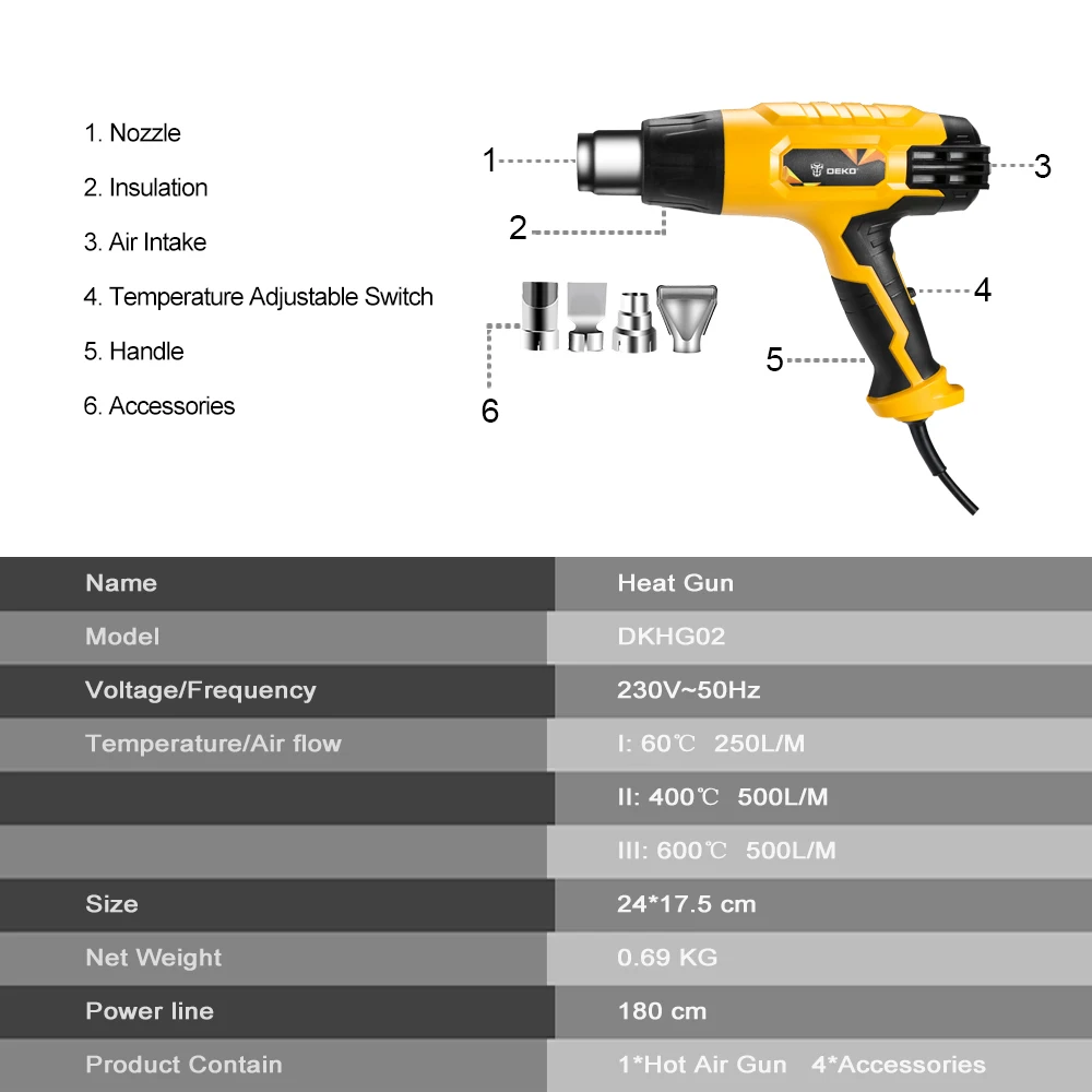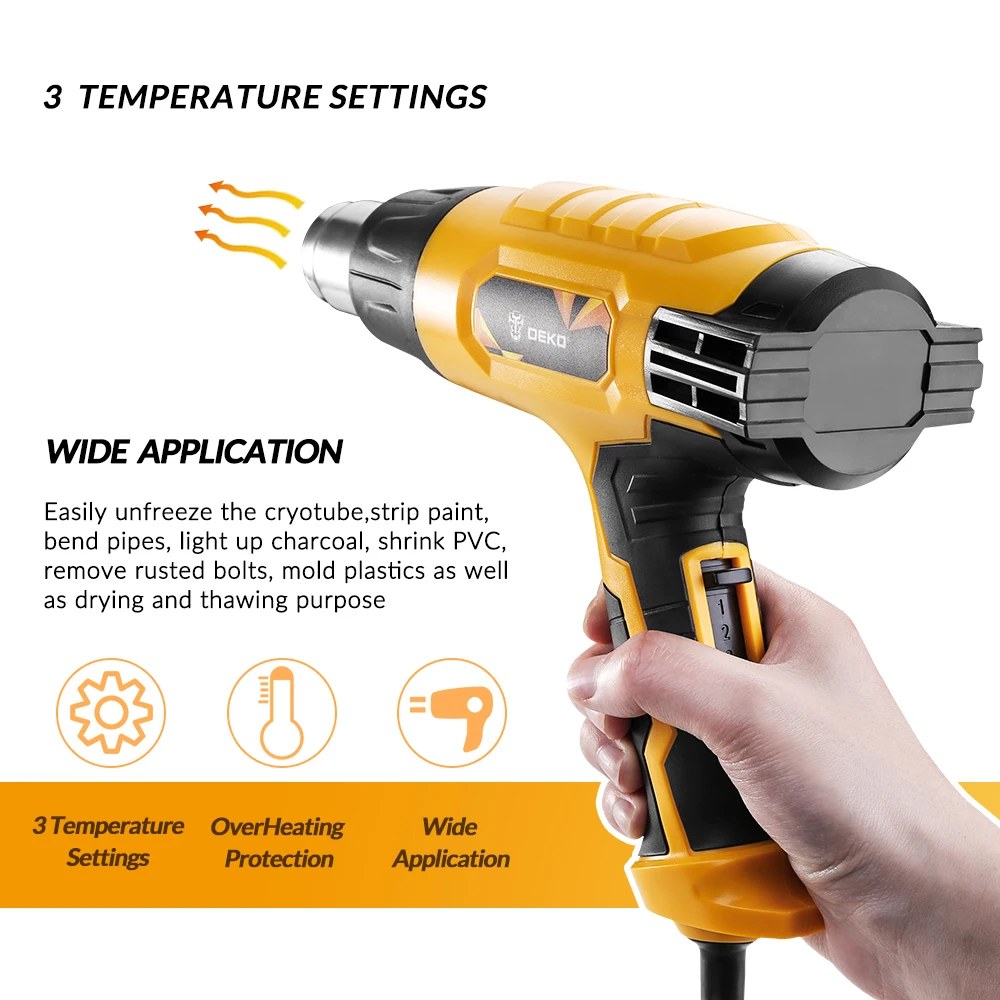 Best . (33% Off) Buy DEKO DKHG02 220V Heat Gun 2000W Home DIY 3 Adjustable Temperature Advanced Electric Hot Air Gun with 4 Nozzle Power Tool Cheap Online.