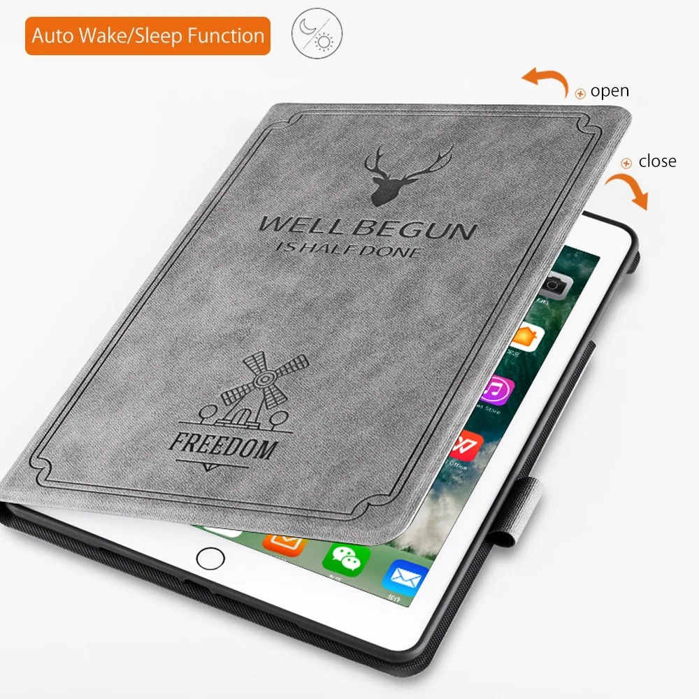 Special Offer For New iPad 9.7 inch 2017 2018 Air 1 2, Auto Sleep Smart Cover Deer Pattern PU Leather Soft silicone Case with Pencil Holder Discount 35% Today!